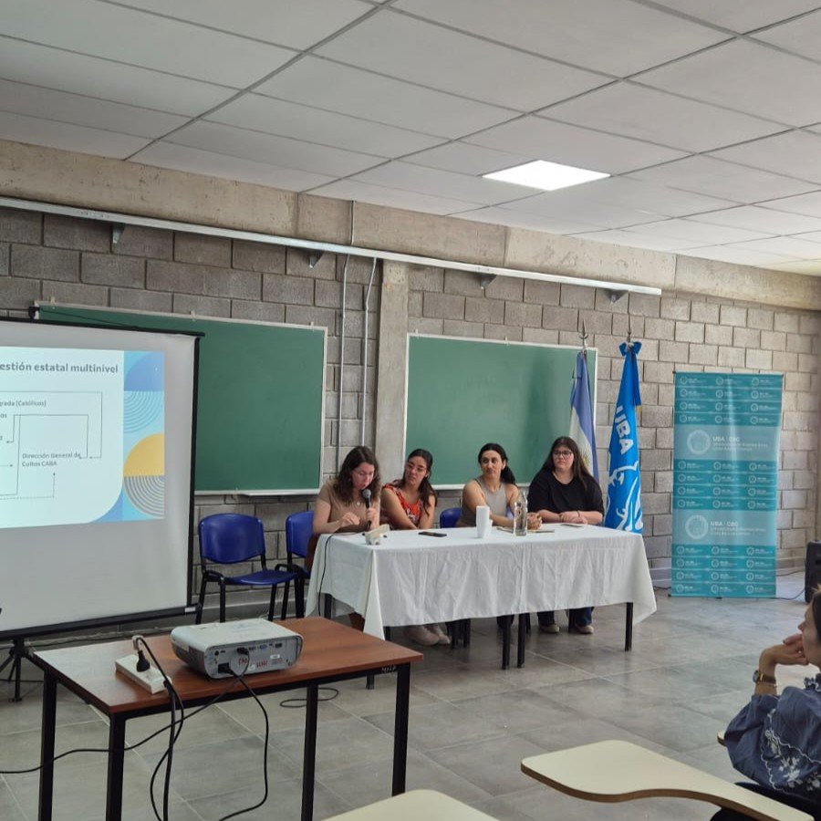El equipo de OCreAR presentó los progresos del proyecto «Gestión estatal de la diversidad religiosa en el AMBA». Ana Carnero, Sofía García Camerata y Candela Saint Paul expusieron los avances de sus investigaciones centradas en los municipios de Moreno y José C. Paz, así como en la gestión de la Ciudad Autónoma de Buenos Aires, acompañadas de Pilar García Bossio. Por su parte, Juan Cruz Esquivel, Fausto Ferreyra y Mariela Mosqueira presentaron el Observatorio de las Creencias en Argentina, acercando a los participantes a los recursos, artículos y canales de comunicación disponibles en este blog.